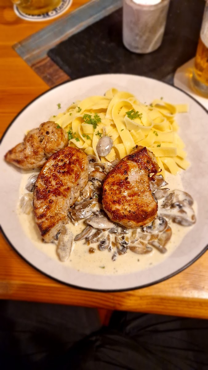 Wir waren mit einer Gruppe von 12 Leuten vor Ort! Sehr gemütlich und heimelig. Bei Gabi und Thomas fühlt man sich direkt wie zuhause! Sehr uriges Lokal. Wohnzimmerflair! Zum Essen gibt es bayerische Schmankerl, aber auch ein Sellerieschnitzel für unsere vegetarischen Freunde war für Gabi kein Problem! Ich hatte die Tagliatelle mit Rinderlendchen in Pilzrahm (siehe Foto)! Leute ich sag's euch. Ein Traum! Verdauungsschnäpschen aller Arten und leckeres Bier gibt es dort auch! Super lecker. Super sympathisch. Wir kommen wieder! Danke Gabi! Danke Thomas